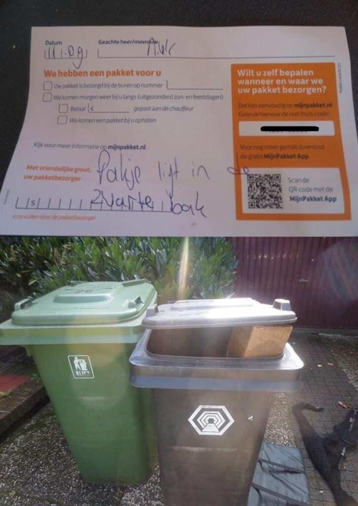 Een ander voorbeeld laat zien dat pakketbezorgers soms de kortste weg kiezen. In plaats van aan te bellen of het netjes bij de buren af te geven, besloot iemand het pakketje simpelweg op de deurmat te parkeren, half zichtbaar voor de straat.
