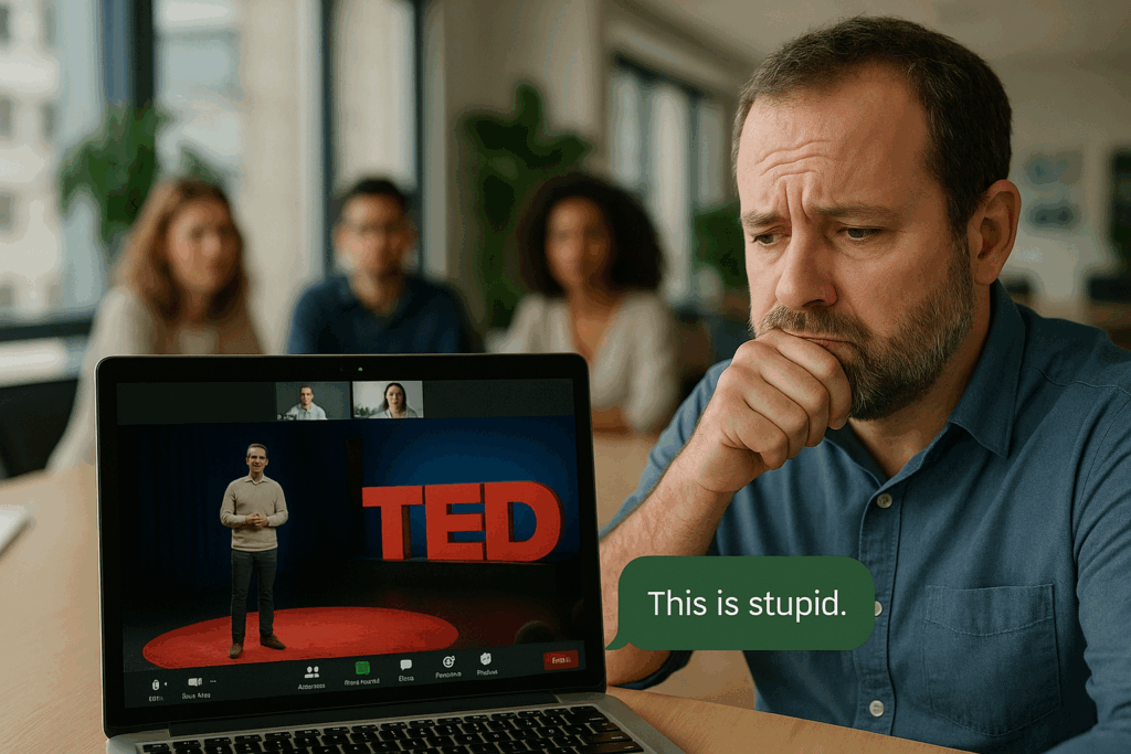 Tijdens een Zoom-meeting waarin een TED-talk over ontspanningstechnieken werd afgespeeld, mompelde een deelnemer: “Dit is stom.” Helaas stond zijn microfoon nog aan, waardoor iedereen zijn opmerking hoorde. Hoewel collega’s probeerden het incident te verdoezelen, was de schade al aangericht.