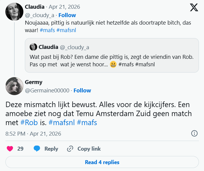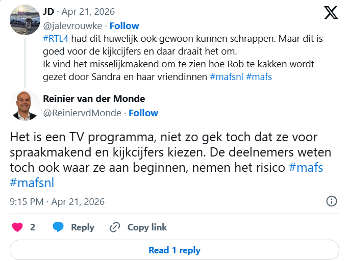 Voor Rob blijft vooral de vraag hangen waarom deze match ooit is gemaakt. Maar één ding is duidelijk: hij sluit de deur niet. En misschien is dat wel precies waarom zoveel mensen hem een warm hart toedragen.