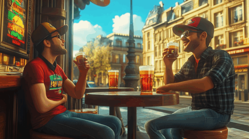 Twee vrienden zitten zoals elke vrijdagavond aan de bar van hun vertrouwde stamcafé. Ze nippen aan hun bier terwijl ze dromen over de zomer.