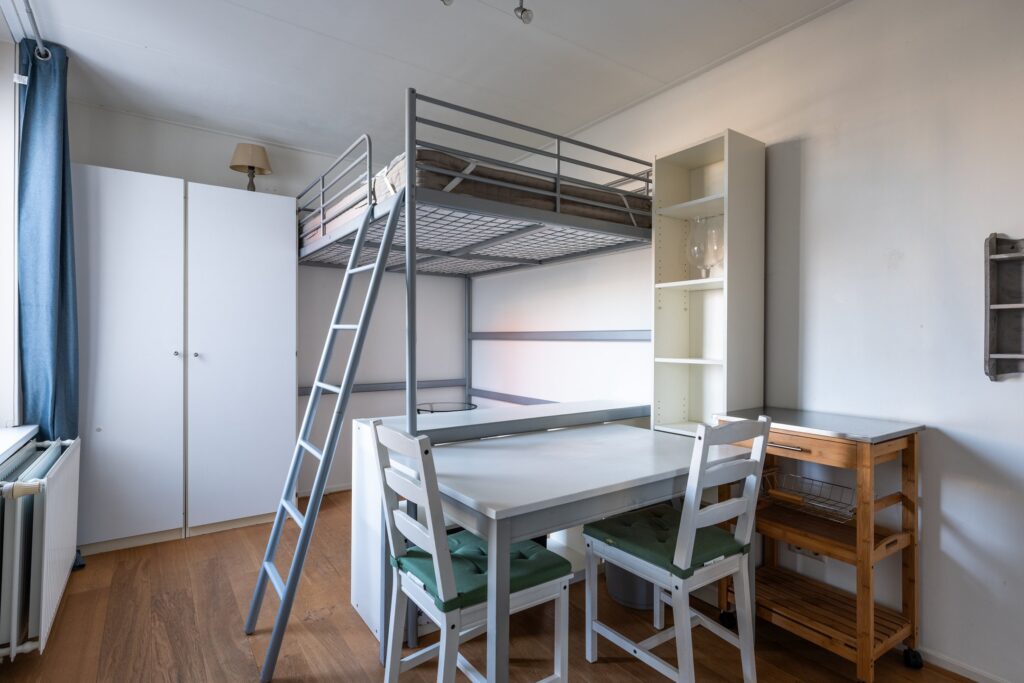 Minimalisme is een levensstijl die je gratis krijgt in dit appartement. Met een woonoppervlak van 17 m² is opruimen in een handomdraai gebeurd: gewoon even een kwartslag draaien en je hebt alles weer gezien. Het enige waar je over na hoeft te denken, is of je bank ook als eettafel kan dienen. Maar ach, waarom moeilijk doen als het ook in je schoot kan liggen?