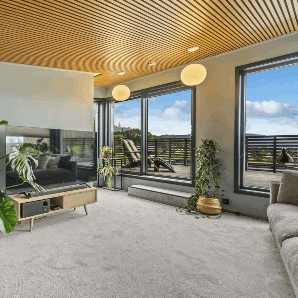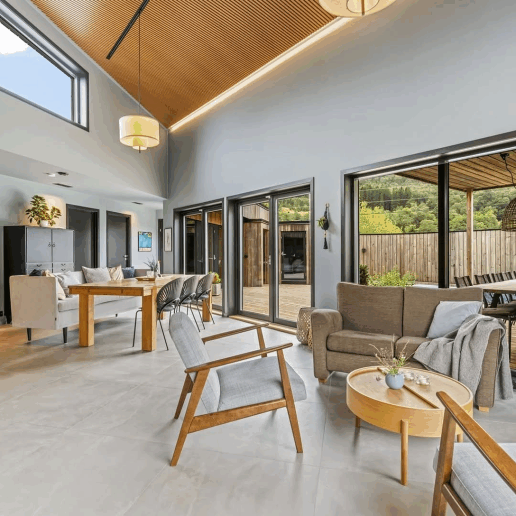 De villa beschikt over een hoogwaardige keuken, ruime woonkamer en twee slaapkamers, ideaal voor zowel permanente bewoning als vakantieverblijf. Dankzij de slimme indeling en grote glaspartijen geniet je het hele jaar door van natuurlijk licht en een gevoel van openheid.