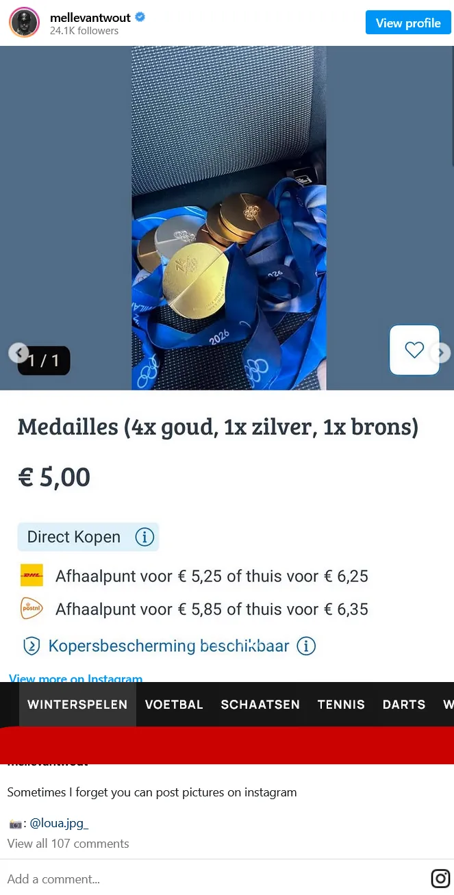 Toch was het niet alleen hun sportieve succes dat voor ophef zorgde. Tussen alle festiviteiten door plaatste Melle een opvallende foto op Instagram. Op het beeld was een Marktplaats-advertentie te zien waarin de Olympische medailles van de broers werden aangeboden.