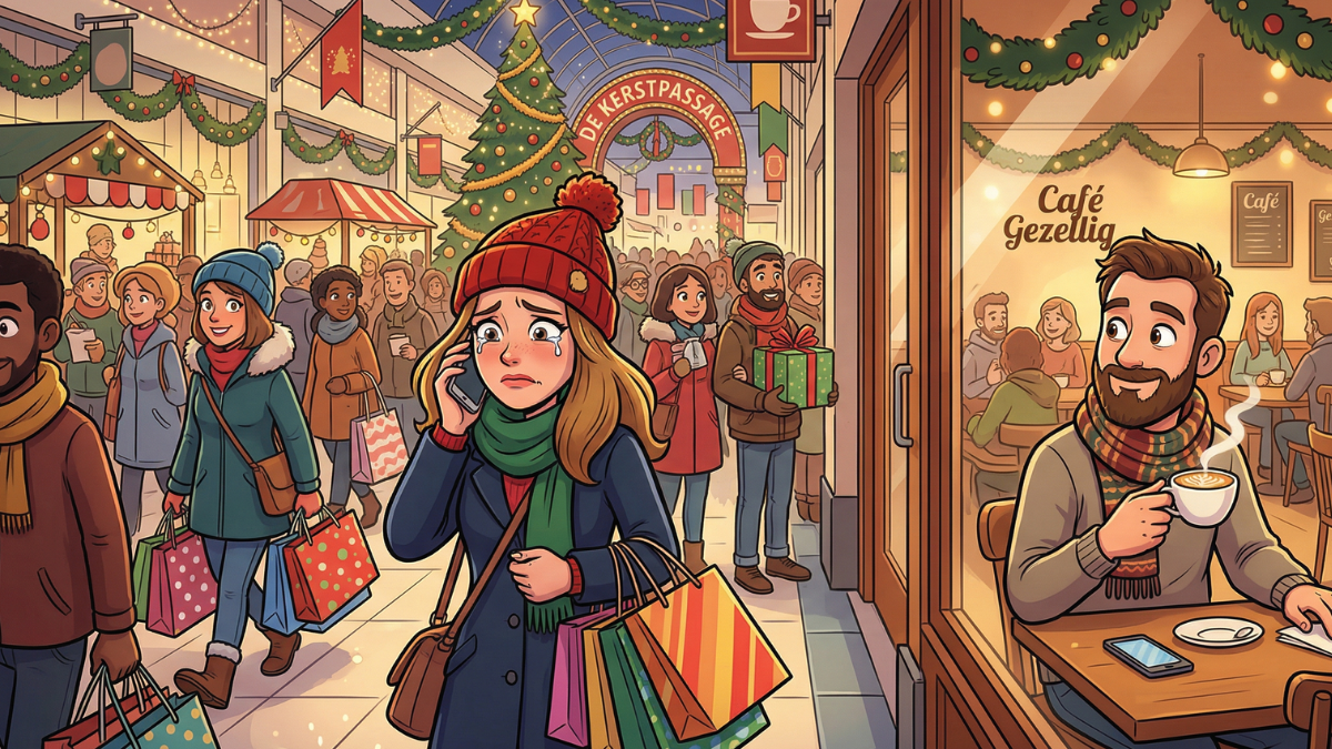 Een stel was op kerstavond nog snel de laatste boodschappen aan het doen in een overvol winkelcentrum. Overal liepen mensen…