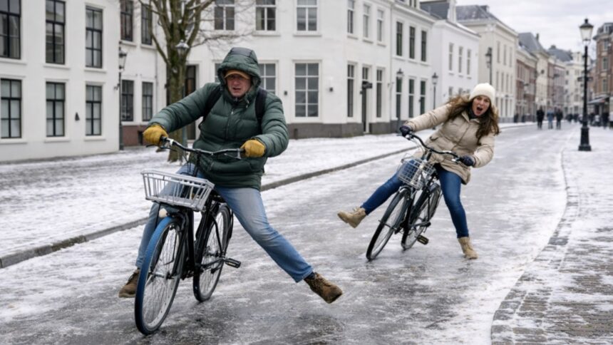 Volgens meteorologen ontstaat het gevaarlijke weerbeeld door een combinatie van zachte regen en zeer koude lucht aan de grond. In de nacht naar dinsdag kan de temperatuur in het noordoosten dalen tot ongeveer -8 graden. Wanneer later op de ochtend en middag regen vanuit het zuiden het land binnentrekt, bevriest die regen direct op wegen, fietspaden en trottoirs.
