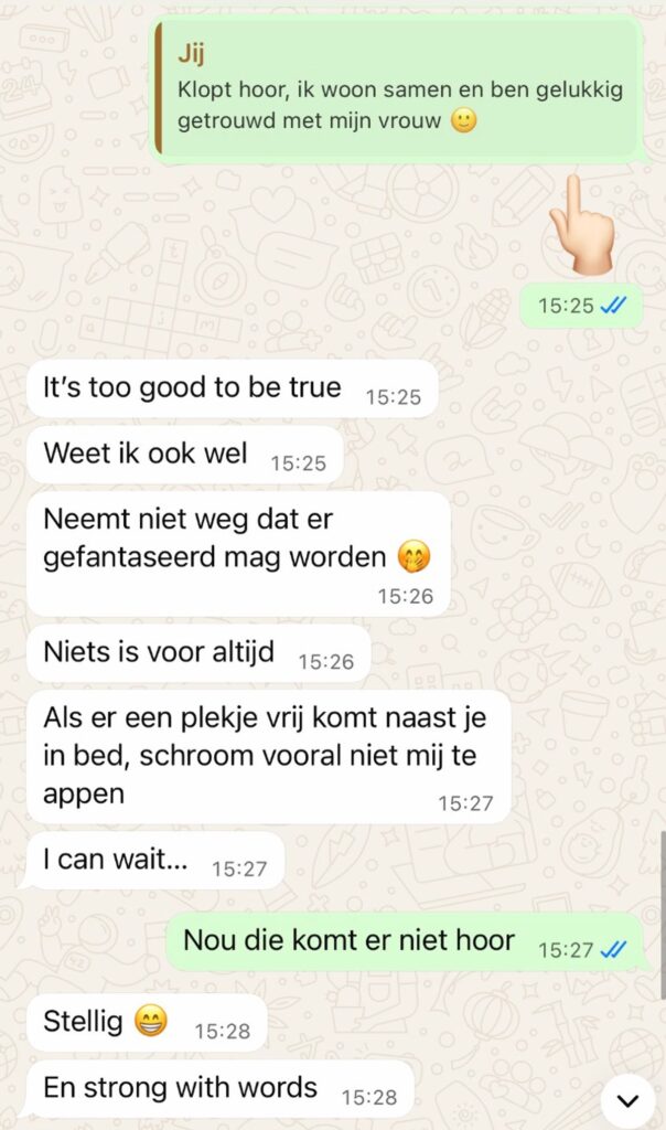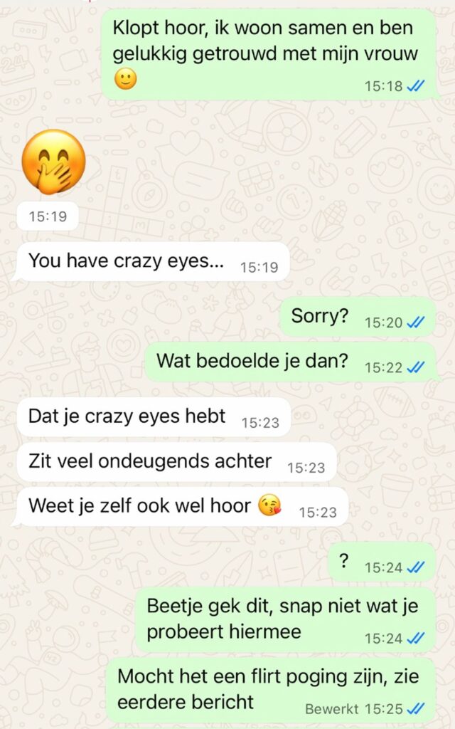Wanneer de vrouw besluit om afstand te nemen en duidelijk maakt dat ze zich niet prettig voelt bij de plotselinge wending in het gesprek, volgt er nog een laatste onaangename verrassing. De verkoper stuurt haar een grove reactie waarin hij haar uitmaakt voor “burgertrutje” en opschept over zijn vermeende succes bij andere vrouwen. Niet lang daarna wordt het contact verbroken. Deze mislukte flirtpoging is het toonbeeld van hoe snel een simpele interactie uit de hand kan lopen, en waarom grenzen en respect in communicatie altijd voorop moeten staan.