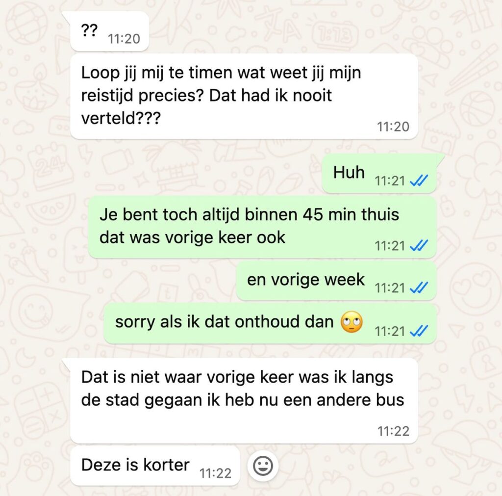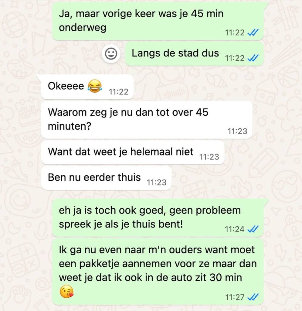 In de chat zien we dat elke minuut en reistijd werd opgemeten, ondanks dat de jongen slechts een kort bericht had gestuurd. De dame voelde zich beperkt en bekritiseerd, wat tot frustratie leidde. Ze maakte duidelijk dat ze behoefte had aan ruimte en dat het opleggen van exacte tijden een vorm van controle was die ze niet waardeerde. Dit soort gedrag – klein, maar steeds terugkerend – wordt vaak gezien als een red flag in beginnende relaties, omdat het aangeeft dat de ander mogelijk geneigd is tot overdreven controle of bezorgdheid.