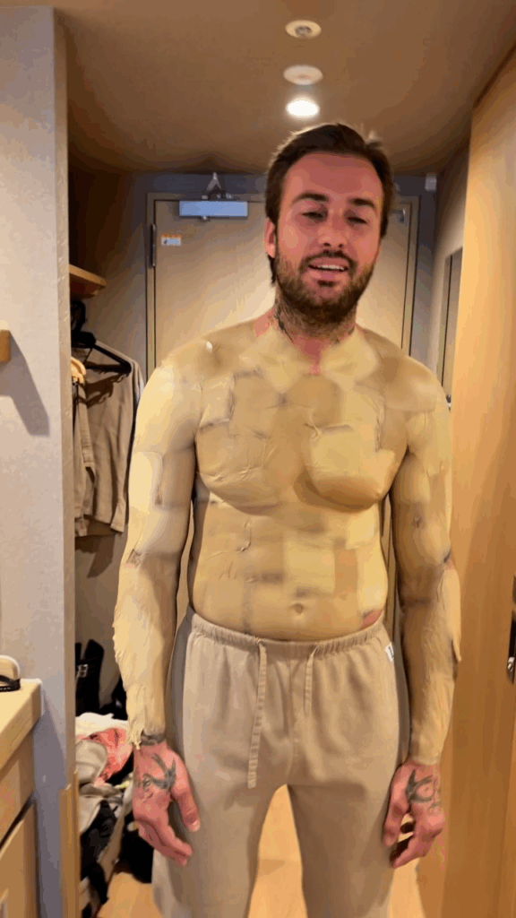 Zijn volgers konden er smakelijk om lachen. Geen tattoos? Dan maar alles dichtplakken, haha!. Ook Dave zelf nam het met humor op en deelde het moment.