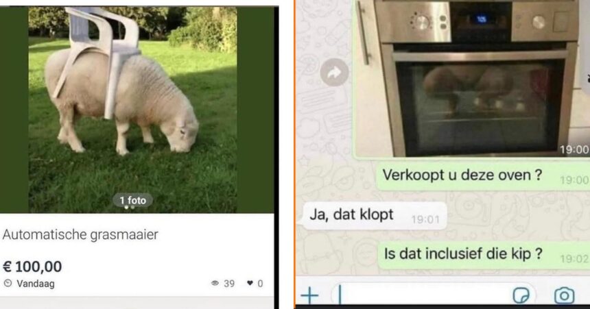 Op Marktplaats kom je werkelijk alles tegen, maar sommige advertenties spannen toch wel de kroon. Zo dook er onlangs een hilarisch voorbeeld op van een ‘automatische grasmaaier’. Op de foto zie je een schaap met een plastic tuinstoel over zijn rug, aangeboden voor een nette prijs van 100 euro. Zulke verkopers die als Marktplaatsgekkies bekend staan, laten zien hoe creatief — of wanhopig — sommige verkopers kunnen zijn.