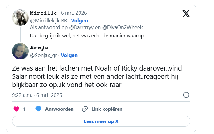 Na de uitzending stroomden de reacties binnen op sociale media. Veel kijkers vonden de manier waarop Salar sprak tegen Mercedes ongepast. Sommige reacties gingen vooral over de toon van het gesprek.