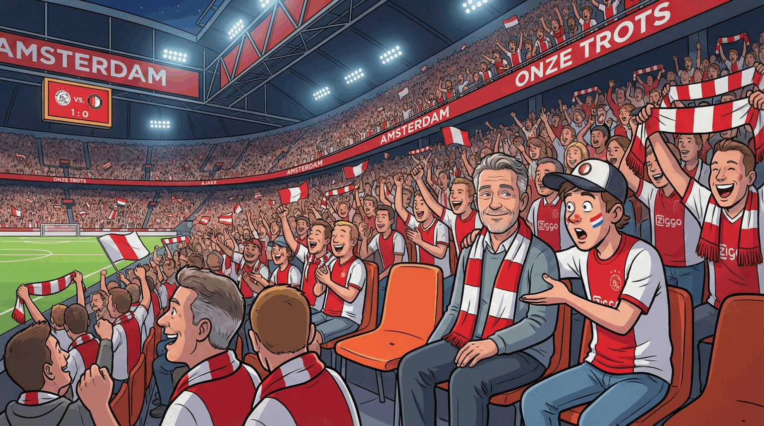 Een fanatieke voetbalfan zit in een uitverkochte Johan Cruijff ArenA tijdens een belangrijke wedstrijd. Tot zijn verbazing ziet hij naast…