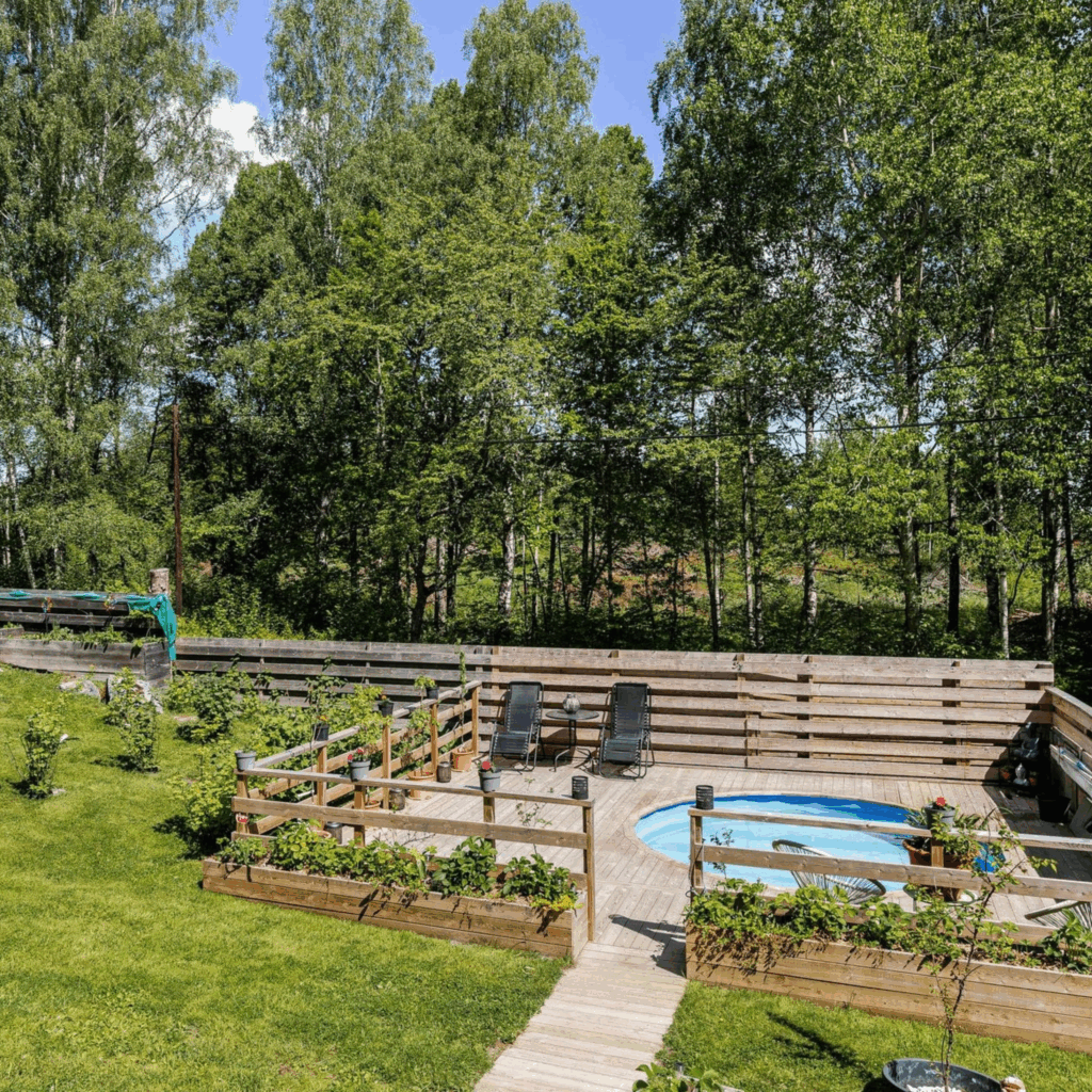 Wat dit huisje in Zweden extra aantrekkelijk maakt, is het karakteristieke ontwerp. De rode gevel met witte accenten is typisch Zweeds en zorgt voor een knusse, warme uitstraling. De woning beschikt over een ruime tuin, een houten terras én een privézwembad: ideaal voor lange zomerdagen in de buitenlucht. Ondanks de landelijke ligging is het huis van alle gemakken voorzien.