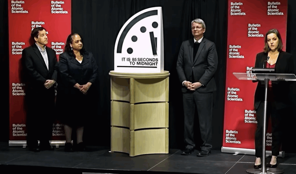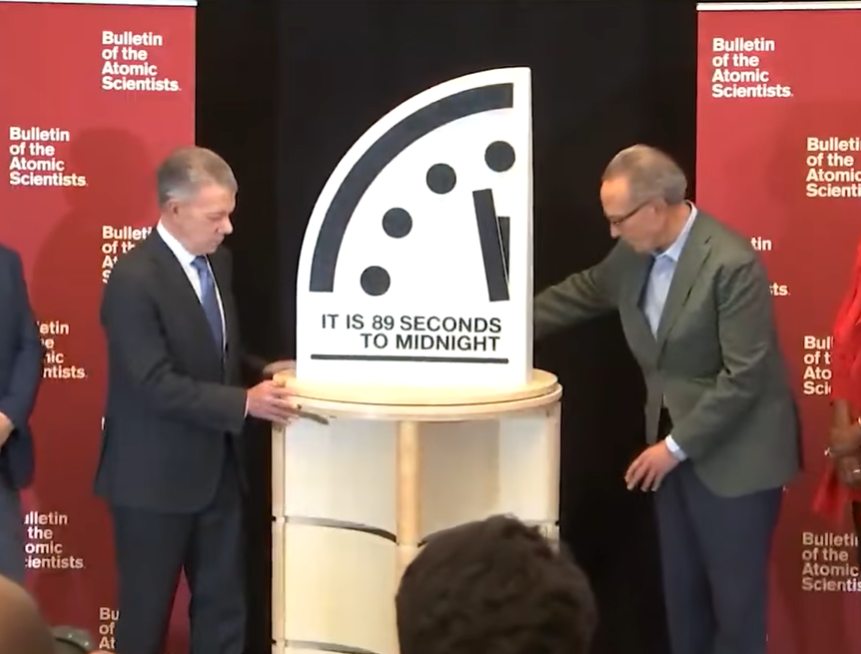 Dinsdag is bekendgemaakt dat de klok van 89 naar 85 seconden voor middernacht is verschoven. Daarmee staat de Doomsday clock dichter bij het symbolische eindpunt dan ooit in haar geschiedenis.