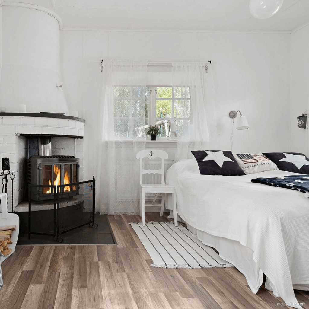 Binnen valt meteen het lichte en warme interieur op. Het Droomhuis in Zweden is met liefde gerenoveerd en biedt een fijne balans tussen hedendaags wonen en knusse details. De leefruimtes zijn praktisch ingedeeld en sluiten naadloos aan op buiten, waardoor binnen en buiten in elkaar overlopen. Grote ramen zorgen voor veel daglicht en uitzicht op het omliggende landschap.