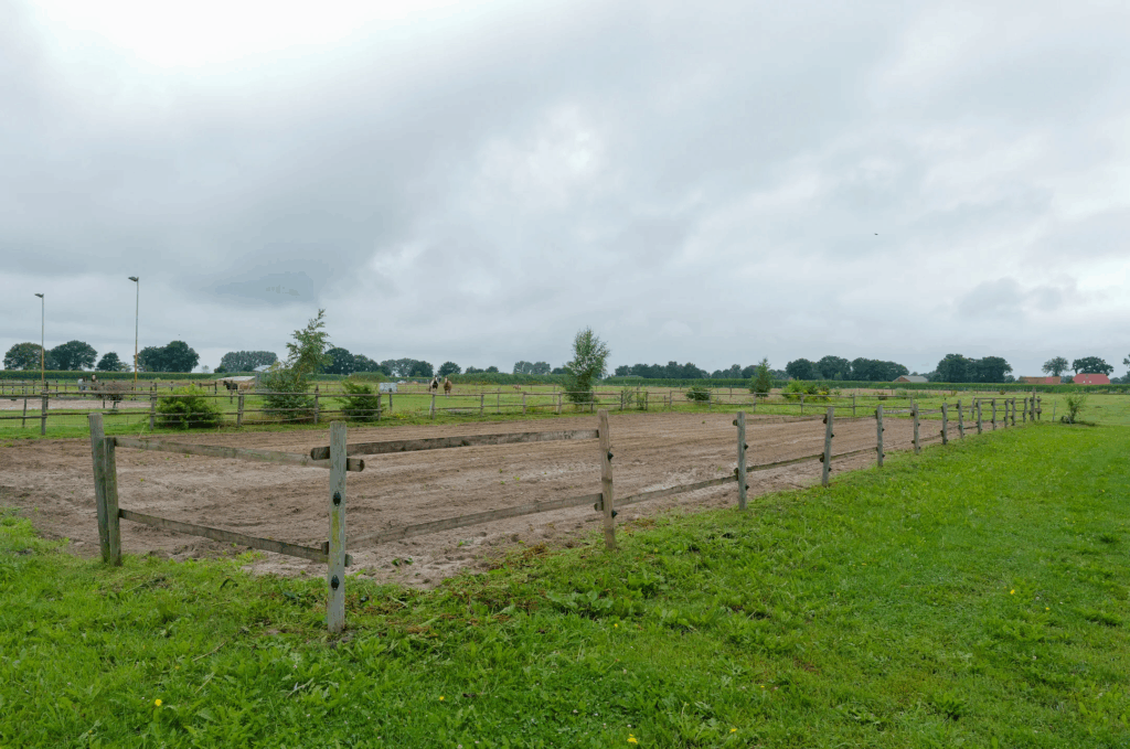 Het perceel van bijna 15.000 m² is perfect ingericht voor paarden. Het weiland is ingezaaid met speciaal paardenmengsel en volledig omheind met Horse Wire hekwerk. De rijbaan van 20 x 40 meter (2021) heeft een fijne zandbodem en is ideaal voor trainingen of lessen. De stal, gebouwd in 2023, biedt ruimte aan zeven boxen en een extra grote box voor gastpaarden of speciale behoeften. Voor opslag is er een royale verharding van 15 x 15 meter, ideaal voor voer en machines.