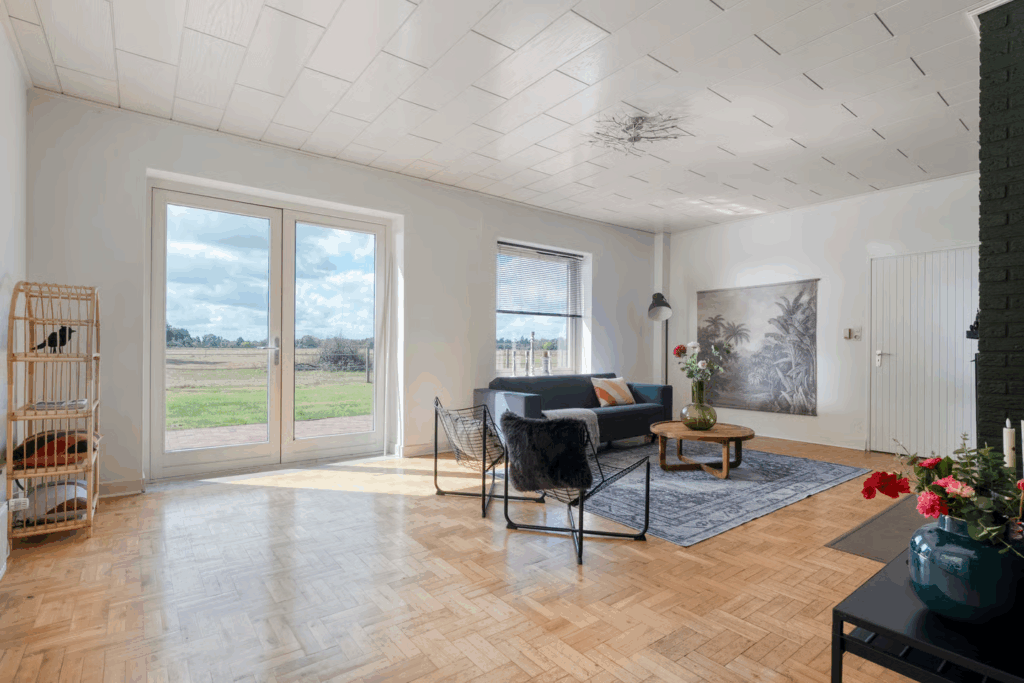 Dankzij de duurzame voorzieningen – waaronder de luchtwarmtepomp en zonnepanelen – is deze paardenboerderij niet alleen charmant, maar ook energiezuinig. De woning beschikt over dubbel glas, natuurlijke ventilatie en glasvezelaansluiting. Met volop privacy, een weids uitzicht en een royale tuin rondom is dit een woning waar je helemaal tot rust komt.