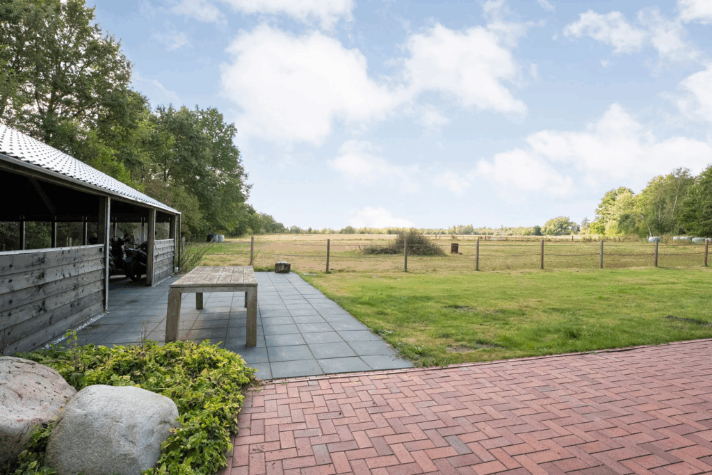 Wat deze paardenboerderij zo bijzonder maakt, is het royale perceel dat zich uitstekend leent voor het hobbymatig houden van paarden, pony’s of kleinvee. De bijbehorende weide biedt volop ruimte voor dieren, terwijl de vrijstaande stenen schuur van 80 m² gebruikt kan worden als stal of opslag. Daarnaast is er een sfeervolle, overdekte veranda waar je het hele jaar door kunt genieten van het buitenleven.