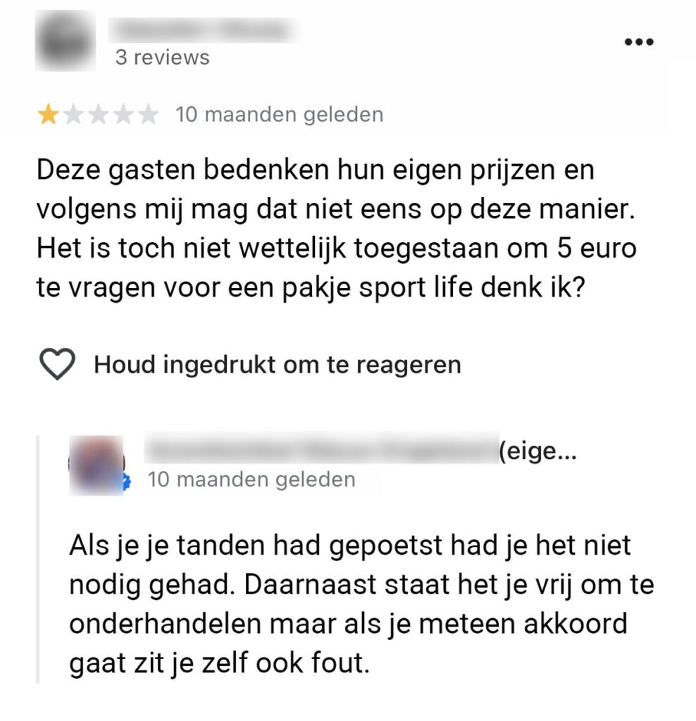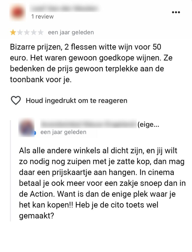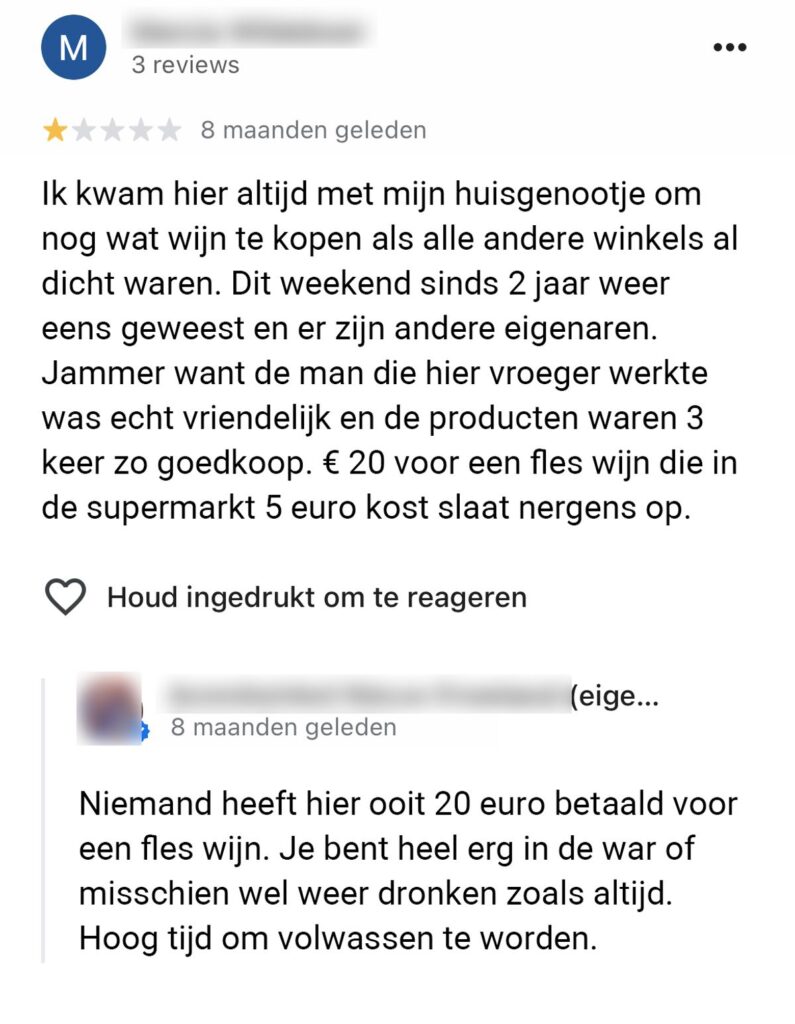 Eigenaar avondwinkel heeft geen zin in kritiek in de reviews en slaat keihard terug