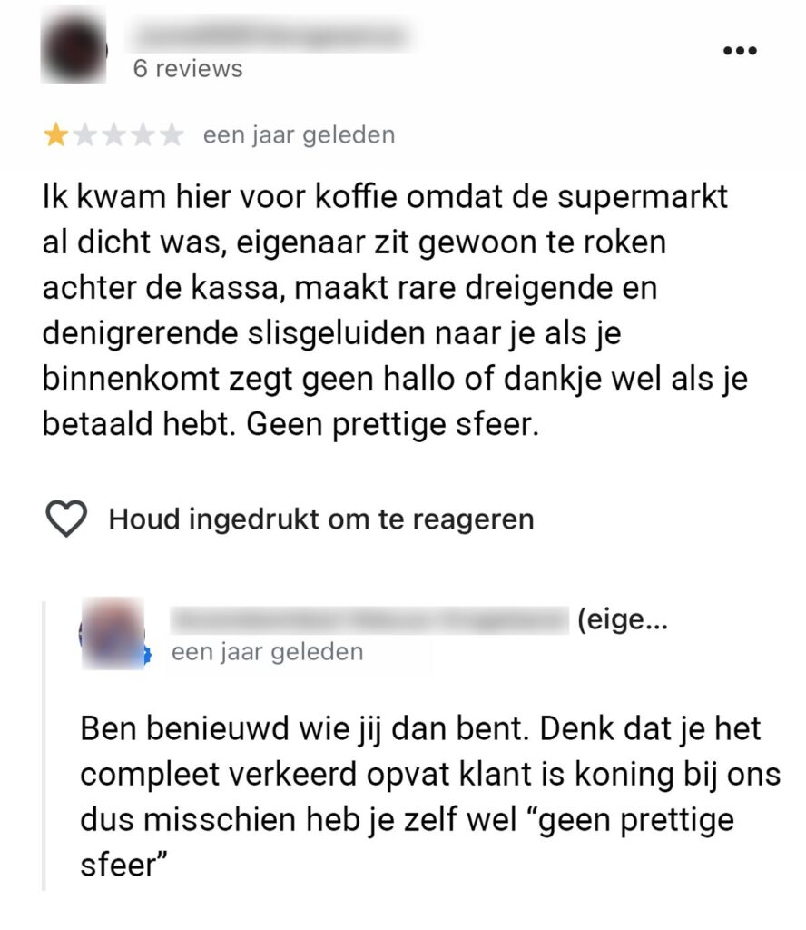 Home » Blog » Eigenaar avondwinkel heeft geen zin in kritiek in de reviews en slaat keihard terug