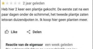 We weten het allemaal: bedrijven smeken tegenwoordig om een “eerlijke review”. Maar als je die eerlijkheid eenmaal geeft… dan kan het goed misgaan. Dat bewijst dit tuincentrum, waar een klant na twee mislukte plantjes zijn frustratie online gooide in de Google-reviews.ContentsTwee keer pech 🍂🐛De eigenaar in de aanval 🚿🫢Moraal van het verhaal 🪴 Tekst loopt … Meer lezen over Woedende eigenaar tuincentrum gaat vol in de tegenaanval na slechte Google-review
