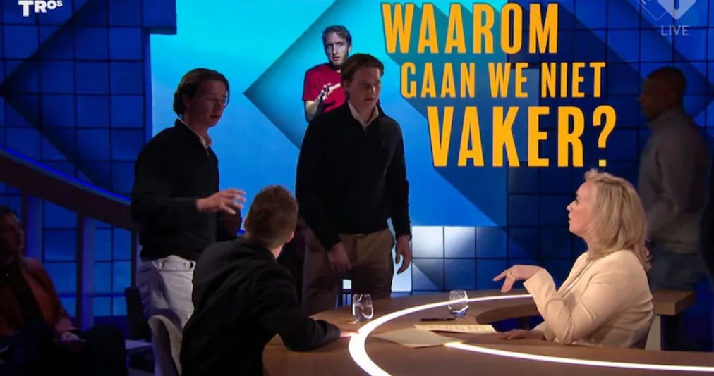 Tijdens een live-uitzending van Eva Jinek op NPO 1 is maandagavond een opvallende verstoring geweest. Twee jonge mannen liepen plotseling de studio in terwijl cabaretier Peter Pannekoek werd geïnterviewd. De actie duurde kort, omdat de beveiliging snel ingreep en het duo verwijderde.