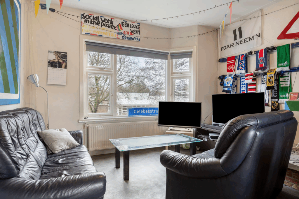 De bovenwoning ligt in de Indische buurt, een populaire wijk onder studenten en jonge bewoners. Met een woonoppervlak van 109 vierkante meter, vijf slaapkamers en een gezamenlijke woonkamer is deze Funda woning duidelijk ingericht op gedeeld wonen. Er is een onttrekkingsvergunning voor vijf personen aanwezig, wat het pand ook interessant maakt als beleggingsobject. Eén kamer staat momenteel leeg en een tweede komt in de zomer van 2026 vrij, wat flexibiliteit biedt voor nieuwe bewoners of verhuur.