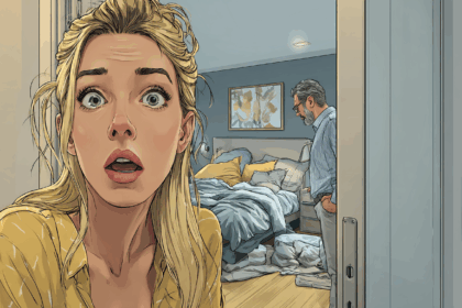 De vrouw kijkt hem woedend aan, haalt uit en BAM, ze geeft hem een stevige klap in zijn gezicht.