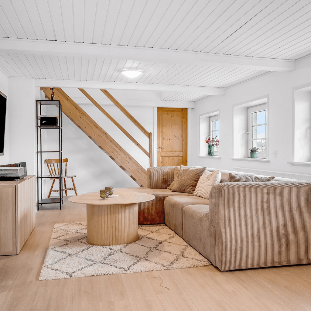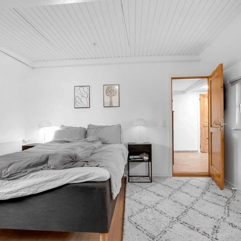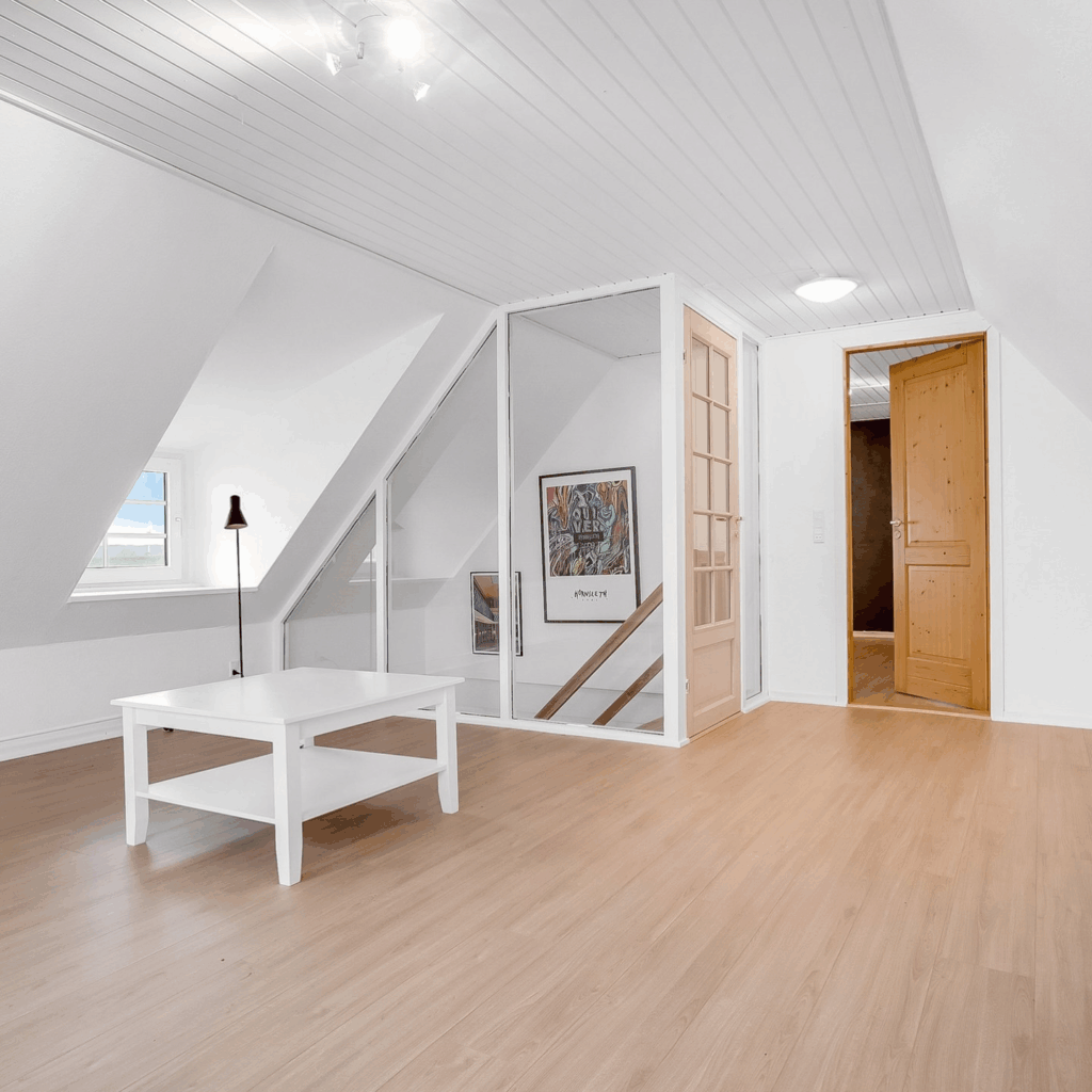 De bovenverdieping biedt nog meer mogelijkheden. Hier bevindt zich een grote extra leefruimte en twee royale kamers, perfect als thuiskantoor, hobbyruimte of slaapkamers voor oudere kinderen. Dit maakt een huis in Denemarken kopen niet alleen aantrekkelijk voor gezinnen, maar ook voor mensen die ruimte zoeken om thuis te werken.