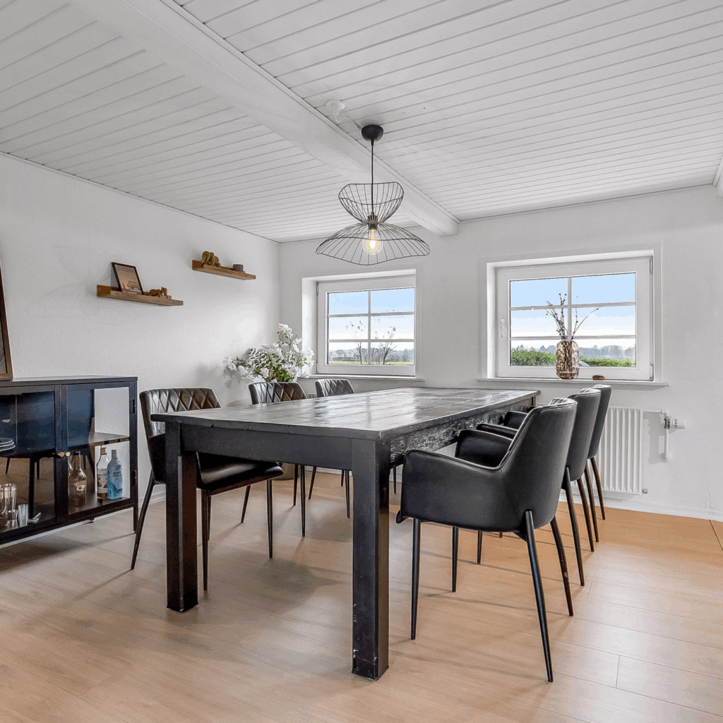Deze woning ligt net buiten Sjølund en wordt omringd door uitgestrekte velden en groen. Het is een ideale plek voor wie een huis in Denemarken kopen wil zonder volledig afgezonderd te wonen. De omgeving is stil en ontspannen, maar praktisch ingericht voor het dagelijks leven. Op heldere dagen kijk je zelfs uit richting Skamlingsbanken, een bekend natuurgebied in de regio.
