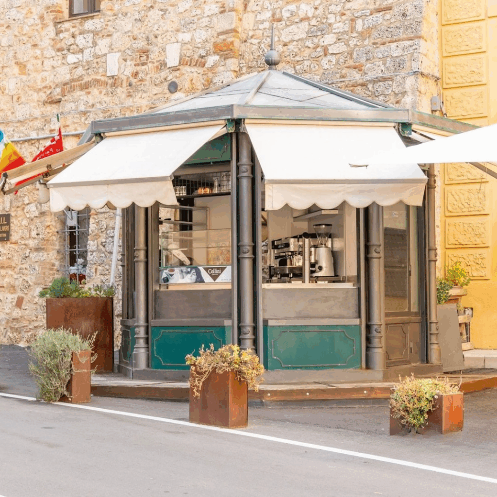 Wat deze kans zo bijzonder maakt, is dat het niet voelt als werk. Voor velen is Ik Vertrek een droom, een sprong in het diepe – en dit kleine caféstandje is de perfecte zachte landing. Gelegen op een hoek van de hoofdstraat, met uitzicht op de typische Toscaanse gevels en geplaveide steegjes, ademt deze plek sfeer, eenvoud en authenticiteit.