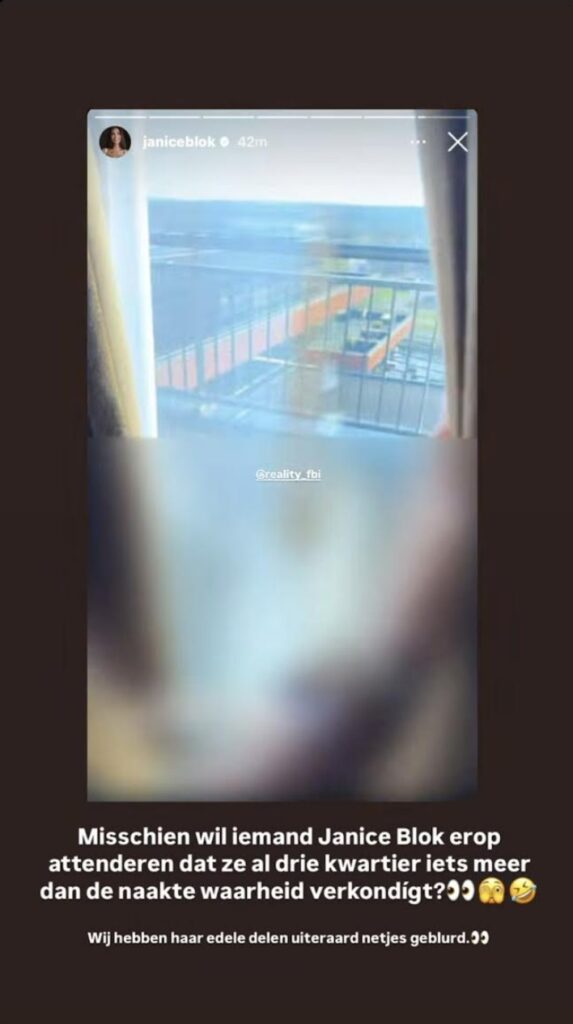 Zoals veel influencers, deelt Janice Blok regelmatig stukjes van haar leven met haar volgers. Dit keer wilde ze hen laten meegenieten van het uitzicht vanuit haar hotelkamer. Wat ze alleen niet doorhad, was dat de glazen balkondeur haar spiegelbeeld perfect reflecteerde. Gevolg? Haar volgers kregen niet alleen het uitzicht te zien, maar ook een onbedoeld kijkje op iets wat ze waarschijnlijk liever privé had gehouden.