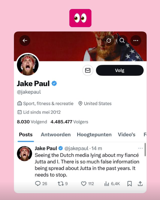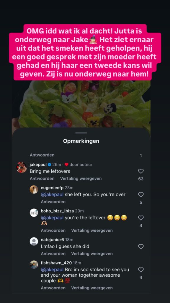 Waar de geruchten steeds groter werden, kwam Jake Paul zelf ook met een reactie. En die was allesbehalve subtiel. Hij schreef: “Seeing the Dutch media lying about my fiancée Jutta… it needs to stop.”