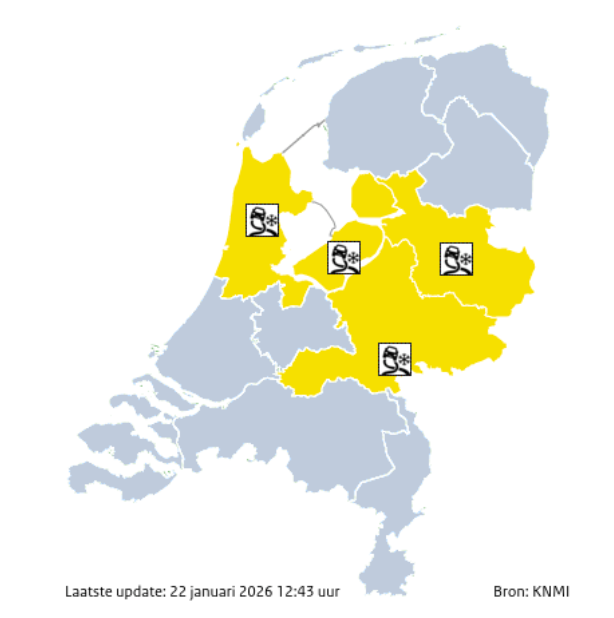Het KNMI heeft in meerdere provincies een Code Geel afgegeven vanwege gevaarlijke gladheid door ijzel. Door regen die bevriest op koude wegen en fietspaden kunnen verraderlijke situaties ontstaan, vooral in het noorden en noordoosten van Nederland. De KNMI weerswaarschuwing geldt met name voor de avond, nacht en vroege ochtend. Volgens meteorologen kan de gladheid plaatselijk plotseling optreden en is deze soms nauwelijks zichtbaar. Dat maakt het risico op uitglijden en verkeersongevallen extra groot.