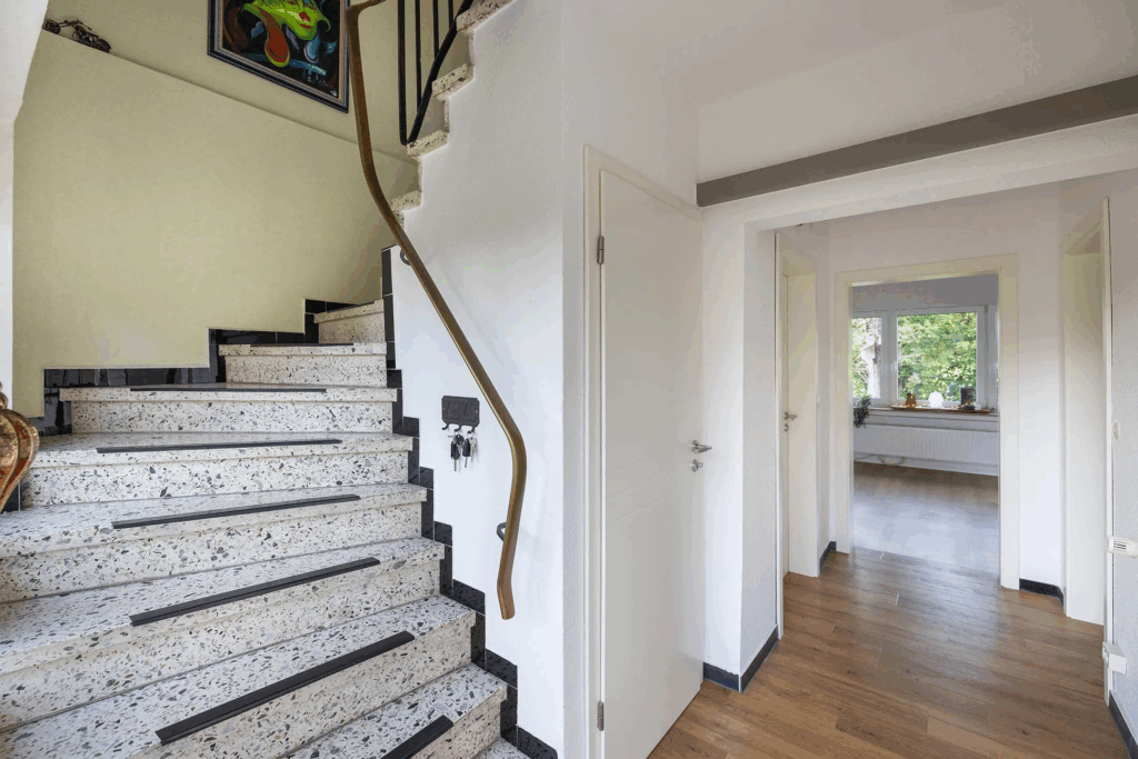 Hoewel dit Duits landhuis midden in een groene omgeving staat, zijn dagelijkse voorzieningen gemakkelijk te bereiken. Supermarkt, scholen, sportverenigingen en Nederlandse grensdorpen liggen op een paar kilometer afstand. Je geniet dus van volledige rust, zonder afgelegen te wonen. De kelder bestaat uit meerdere kamers, waaronder een stookruimte en diverse provisieruimtes – ideaal voor opslag, voorraad of hobbyprojecten.