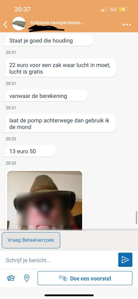 Wie ooit iets verkocht of gekocht heeft, weet dat een luchtbed op Marktplaats vaak niet alleen een luchtbed is. Het is ook een bron van onverwachte gesprekken. In dit geval begon het allemaal vrij netjes: een koper vroeg naar de staat van het luchtbed. Hij kreeg te horen dat er een pomp bij zat en dat het item in perfecte staat verkeerde. Tot zover niets geks.