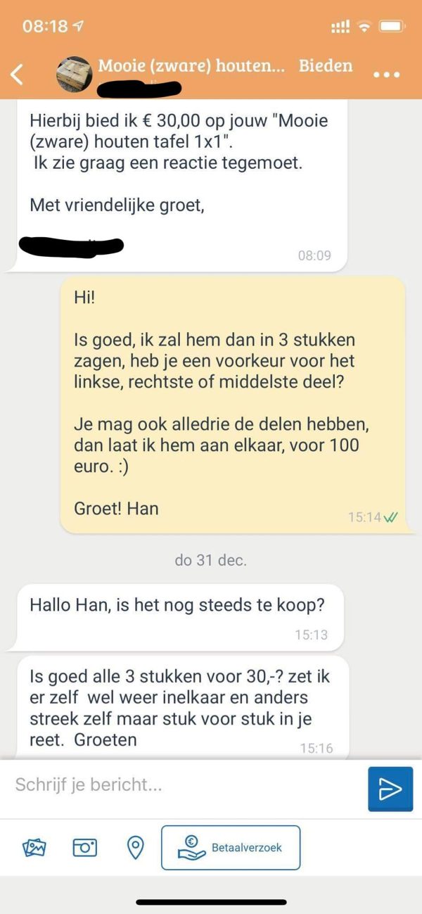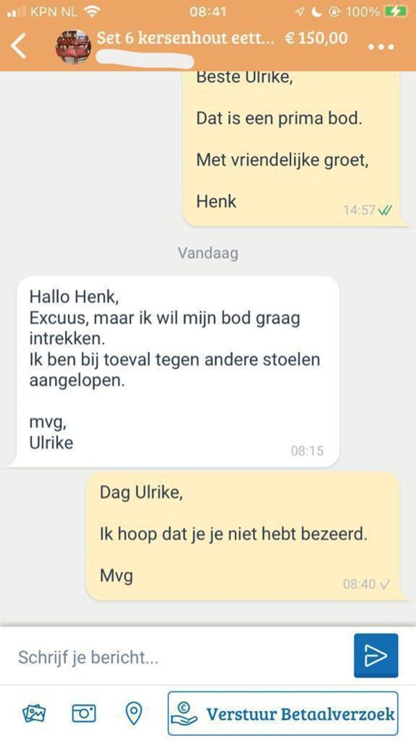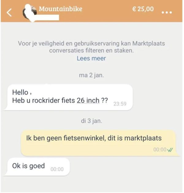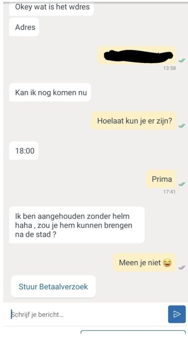 Iemand vraagt om een adres, plant keurig om 18:00 te komen — en gooit er dan ineens achteraan dat hij “zonder helm is aangehouden” en of jij de helm even naar de stad kunt brengen. Het is een soort energie die je alleen op Marktplaats ziet: geen schaamte, geen logica, alleen pure chaos met een glimlach.