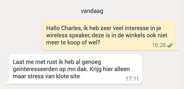 Het meest indrukwekkend? De verkoper blijft rustig. Terwijl de koper zich gedraagt alsof hij onderdeel is van een realityshow waarin je punten krijgt voor het aantal problemen dat je in één dag veroorzaakt.