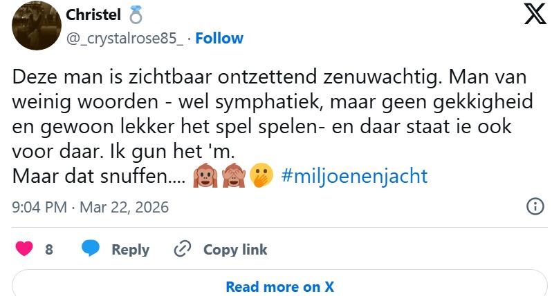 Tijdens de uitzending leefden kijkers intens mee met de finalist. Vooral zijn zenuwachtige houding viel op en zorgde voor veel reacties op sociale media. “Deze man is zichtbaar ontzettend zenuwachtig,” schreef een kijker op X.