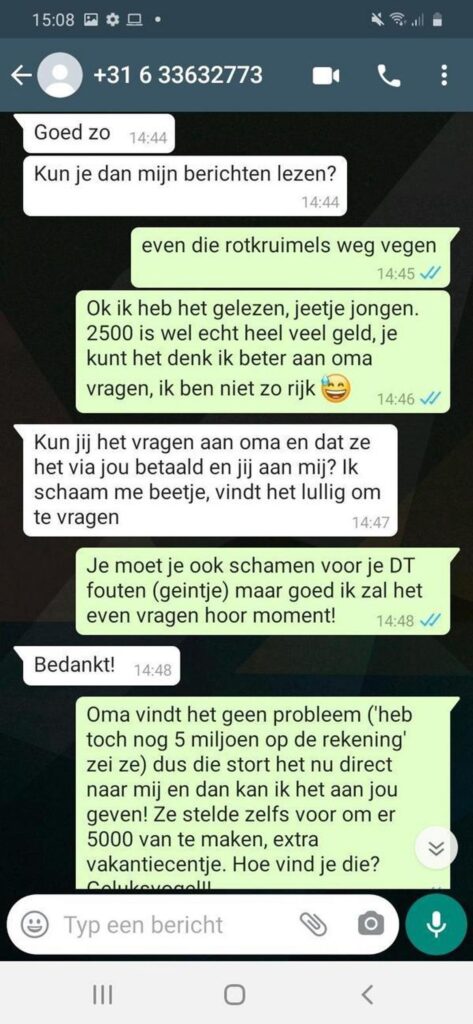 Home » Blog » ‘Moeder’ geeft Whatsapp-oplichter de schrik van zijn leven met ‘bijzondere hobby’