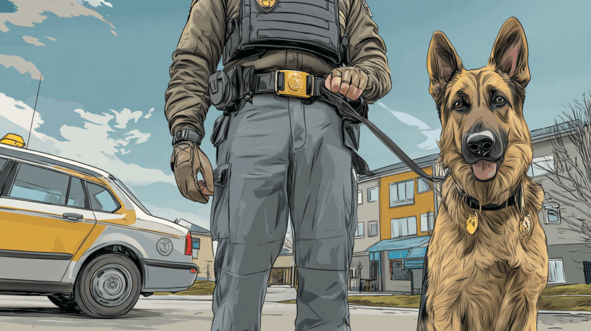 Nog geen kwartier later gaat de bel. Voor de deur staat een agent, in uniform, met een speurhond naast zich. De vrouw kijkt hem eerst verbaasd aan, fronst, en dan valt haar mond open.