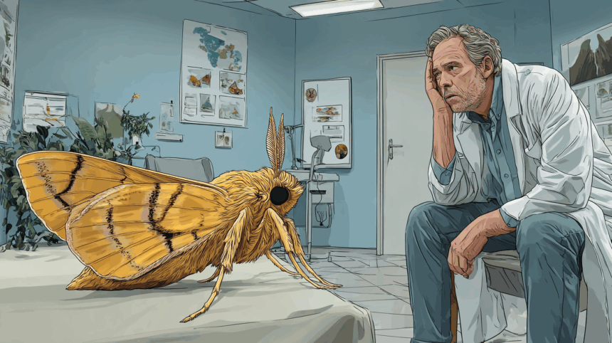 “Maar… waarom bent u dan bij mij gekomen? Ik ben geen therapeut, ik ben een huisarts. U bent een mot. Waarom kwam u hier binnen?”
