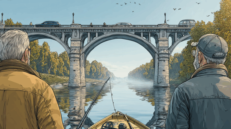 Twee mannen zitten te vissen in een bootje onder een brug, ergens langs de Maas. Het is zo’n typische zaterdagochtend: thermoskan koffie, paar boterhammen met kaas, en vooral… geen haast. Op een gegeven moment kijkt de ene omhoog en ziet boven hen een rouwstoet over de brug rijden — zwarte auto’s, langzaam, plechtig.Zonder iets te … Meer lezen over De visser en de rouwstoet