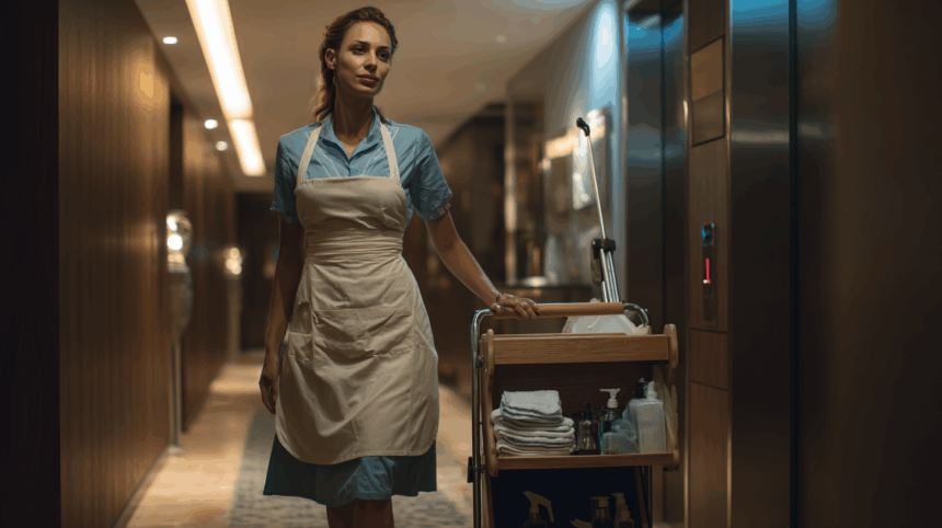 “Zeg, die gast van kamer 204… alles goed met hem? Hij blijft maar naar buiten komen alsof hij vastloopt in een loop!”