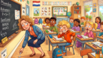 De juf staat voor de klas en schrijft iets op het bord.Jantje roept: “Juf, u heeft haar onder uw rechterarm!” De juf kijkt boos om en zegt:“Fo ei Jantje, ga jij maar naar huis voor de rest van de dag!” De volgende dag zit Jantje weer braaf in de klas.De juf schuift het bord omhoog … Meer lezen over Jantje maakt juf compleet gek