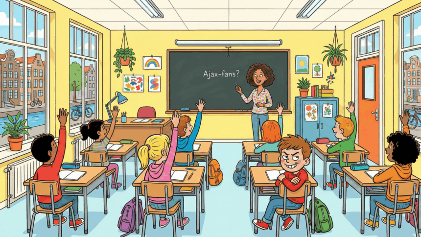 De juf lacht ongemakkelijk. “Feyenoord? Hoe kom je dáár nou bij?”