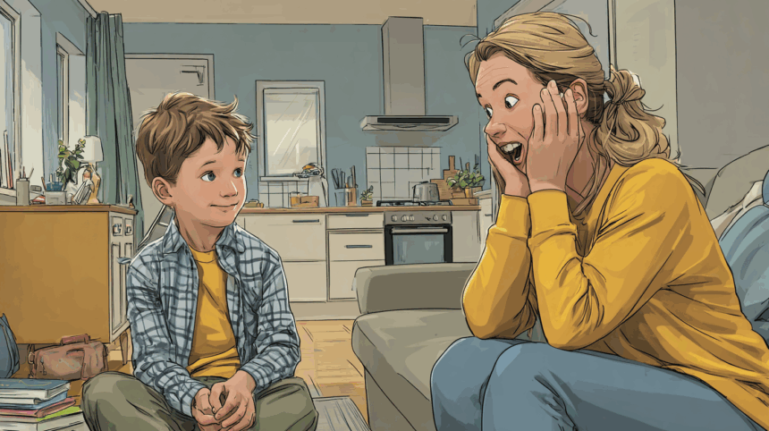 “Ja mam, ik mocht eerder weg, omdat ik als enige een vraag in de klas heb beantwoord.”