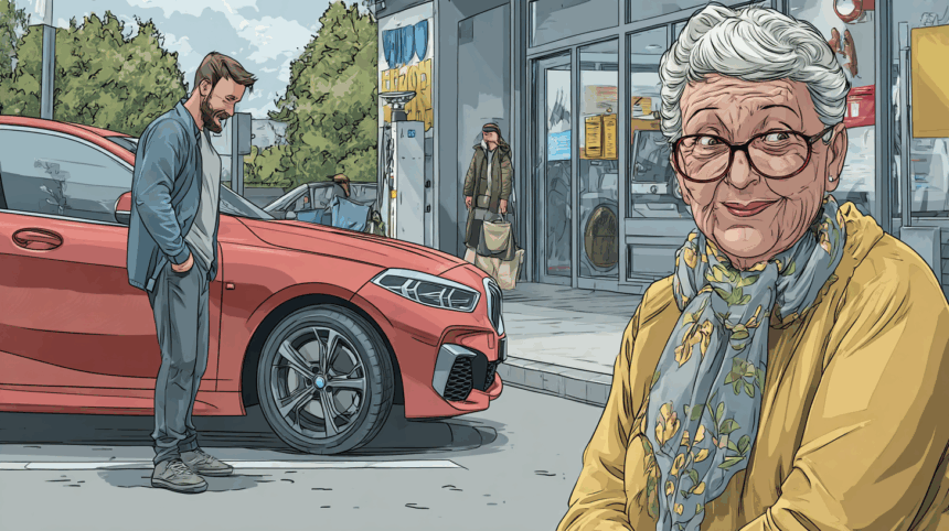 Elsie, een oudere dame met een vaste handtas op de bijrijdersstoel, stond netjes met haar knipperlicht aan te wachten op een parkeerplek bij de lokale supermarkt. Net toen ze wilde indraaien, scheurde een jonge vent in een gloednieuwe rode BMW langs haar heen en zette zijn auto doodleuk in “haar” plek.