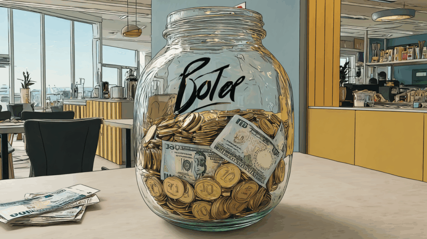 Kevin knikt, loopt richting de pantry, blijft even bij het potje staan… en loopt dan rustig verder.