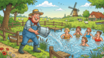 Een boer besluit op een warme zomerdag even af te koelen in het kleine meertje op zijn land.Hij pakt een oude metalen emmer mee, zodat hij op de terugweg nog wat appels kan plukken uit de boomgaard. Wanneer hij bij het meertje aankomt, hoort hij ineens gelach en vrolijk geklets.Nieuwsgierig loopt hij wat dichterbij. Tot … Meer lezen over Krokodillen voeren