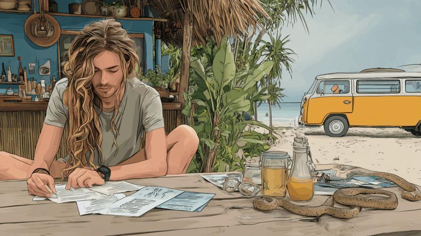 Eigenlijk gaat het best goed. Alleen ben ik een paar weken geleden gebeten door een slang tijdens een junglefeestje in Thailand. Het bleek gelukkig geen gifslang, maar door de kruiden die die backpacker me gaf als “natuurlijke pijnstiller” ben ik drie dagen vergeten waar ik was. Mijn paspoort ben ik weer terug aan het verzamelen (lang verhaal), dus geen zorgen.
